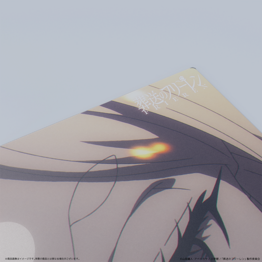 複製体との熱い戦いシーンを選定。デザインは主張しすぎず、日常に溶け込む使いやすさにもこだわりました。フリーレンらしさをさりげなく感じられる、特別なアイテムです。