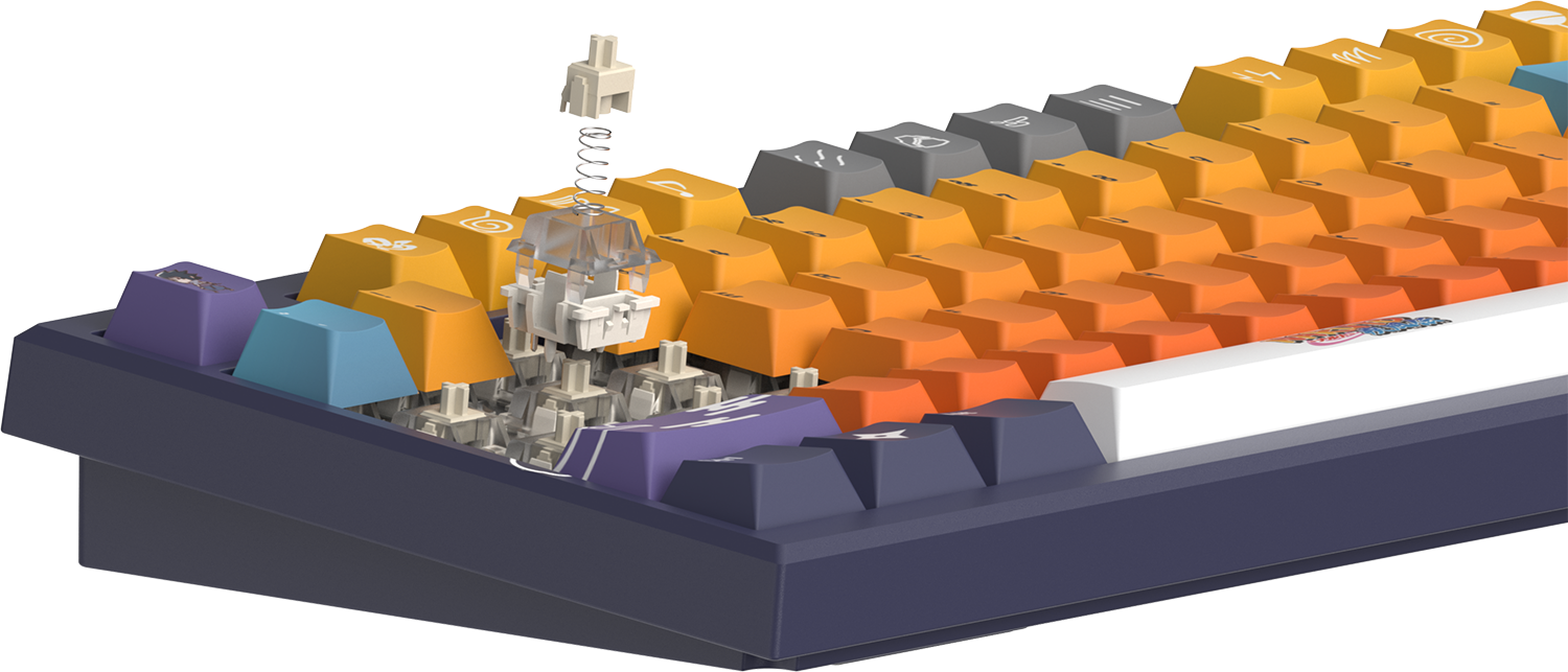 CNCアルミニウムケースと昇華印刷キーキャップが織りなす質感は、ゲーミングデバイスをアートの領域へと引き上げます。