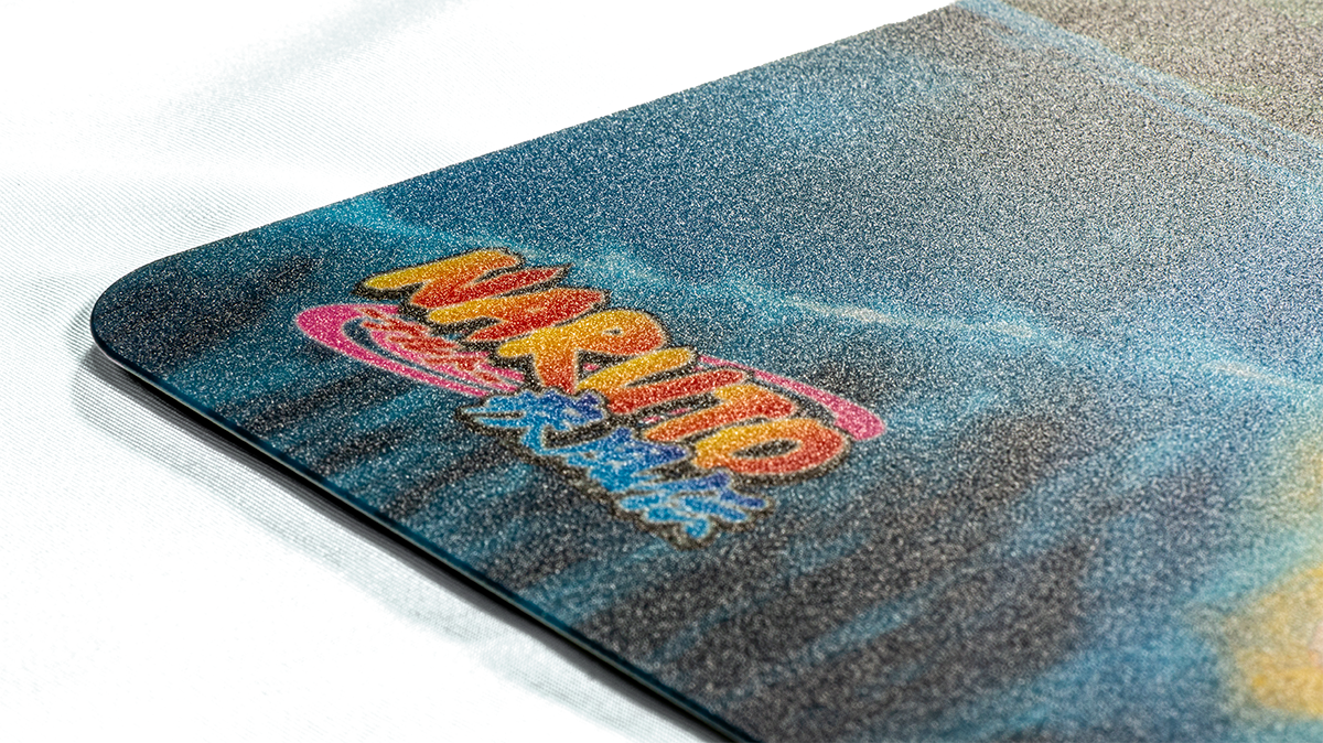 表面素材に撥水加工を施し、イラストへの汚れや湿気に強い表面を実現し商品の劣化を防ぎます。